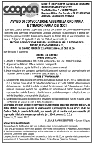 E’ stata fissata per il prossimo venerdì 22 aprile, alle ore 17.00, nell’Auditorium della Regione di Via Sabbatini a Udine, l’Assemblea sociale generale ordinaria e straordinaria della Coopca in concordato preventivo. Sarà un appuntamento importante perché all’ordine del giorno, oltre all’approvazione del bilancio al 31.12.2014 e a diverse questioni rimaste in sospeso dopo la precedente assemblea del luglio 2015 e la nomina dei liquidatori sociali avvenuta per decisione del Tribunale, i soci azionisti e prestatori della storica cooperativa carnica attualmente soggetta a procedura concordataria saranno chiamati a deliberare l’azione sociale di responsabilità nei confronti degli amministratori.