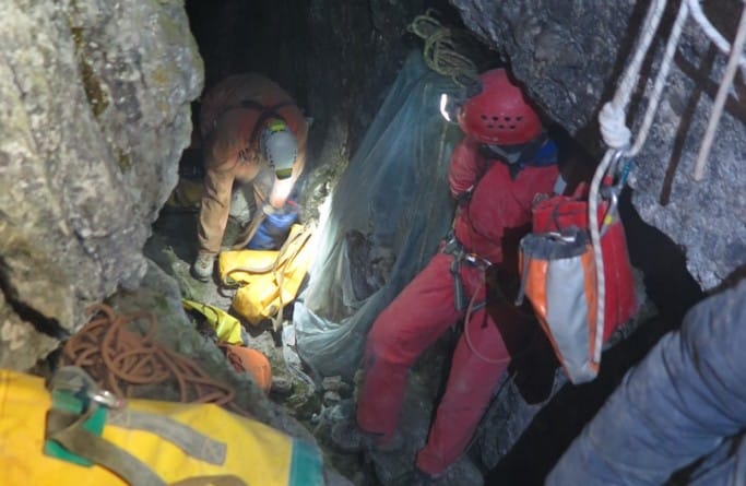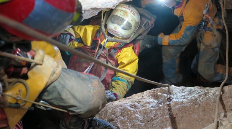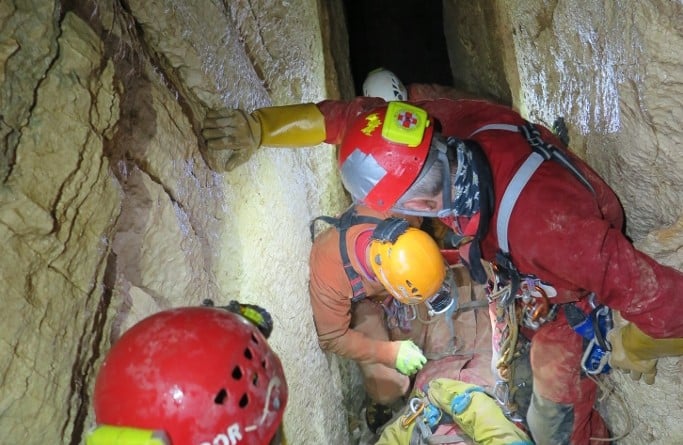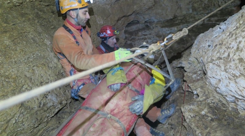 Durante le 36 ore di recupero ininterrotto, la barella è transita in stretti meandri, gallerie e pozzi verticali, tra cui uno profondo 180mt, sempre trasportata ed accudita dalle squadre di nazionalità mista; all’esercitazione hanno preso parte 72 tecnici, e di questi ne sono entrati in grotta 60, i cosiddetti “profondisti”.