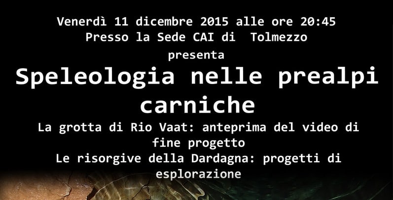 In occasione della Giornata Internazionale della Montagna, venerdì 11 dicembre alle ore 20.45 la Sezione del CAI di Tolmezzo propone presso la propria sede di via Val di Gorto una serata dedicata alla “Speleologia nelle Prealpi Carniche” a cura del Gruppo Speleologico Carnico Michele Gortani, sezione di Tolmezzo.