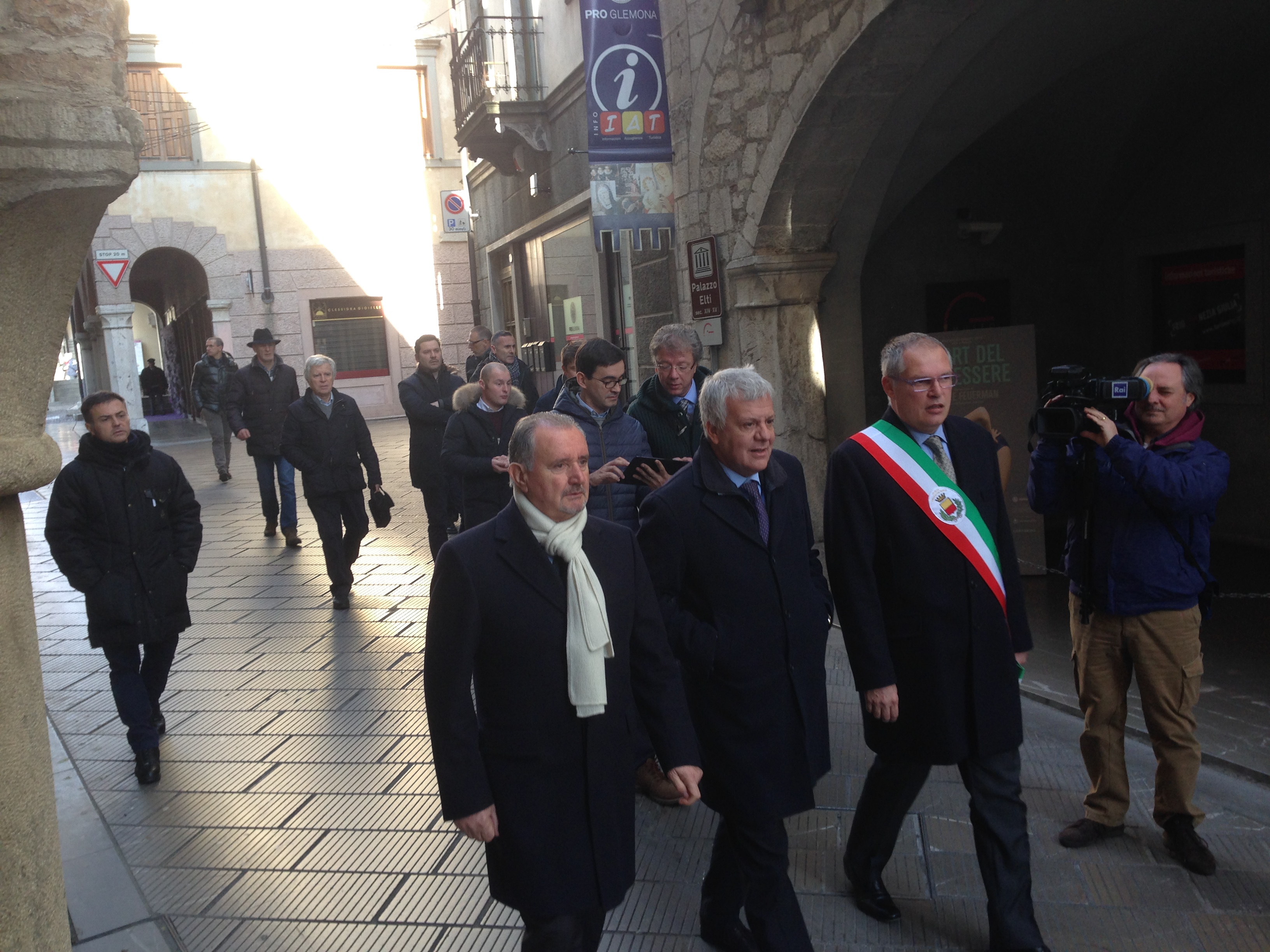Galletti, accompagnato dal sindaco Paolo Urbani ha compiuto un tour tra via Bini, il Duomo e Palazzo Boton, per poi partecipare alla conferenza stampa durante la quale si sono resi noti i termini del proseguo del progetto, alla presenza del professor Peressotti dell’Università di Udine, il partner tecnico che d’ora in poi si occuperà dell’analisi dei dati raccolti e della predisposizione del modello di impronta di carbonio dal quale ci si auspica di ottenere una buona pratica “pilota” per tutti i comuni italiani.