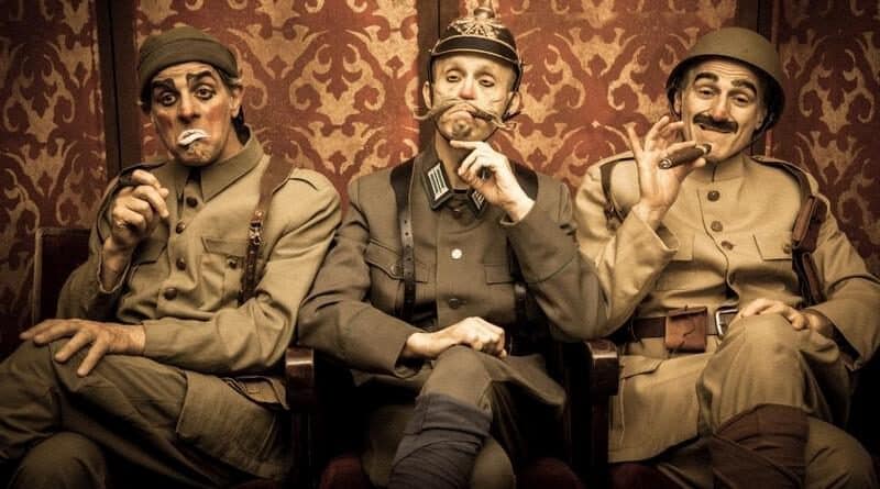 Ci sono un tedesco, un americano e un italiano. Sembra l’inizio di una barzelletta ed invece questa è una storia vera: una storia senza tempo, come i suoi tre protagonisti, come quello che li muove, come quello da cui scappano. Sono tre clown-soldati, reduci di tutte le guerre della storia, che arrivano alla guida della loro jeep militare per innalzare un monumento ai caduti di ogni guerra e ricordare quanta stupidità ci sia stata nella storia.