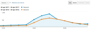 E ancora 6.837 sessioni (+32.32%) e 3.833 utenti unici (+30.86%).