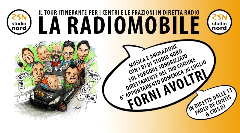 Domenica 26 luglio “La Radiomobile” farà tappa dalle 11 a Forni Avoltri con Paolo De Contis e Cris DJ.