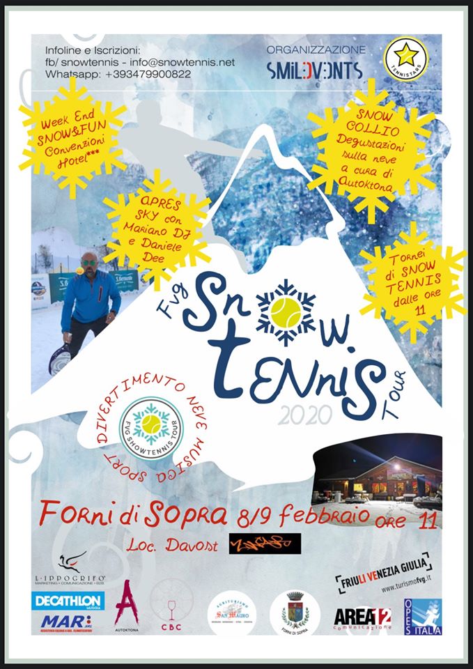 Le prove generali dello Snowtennis si sono svolte a Tarvisio, sulla pista di sci Di Prampero del Lussari, in occasione del torneo di Snowrugby. Il tour che scandirà il 2020 farà tappa appunto a Forni di Sopra, poi a Sappada 15 febbraio, per una giornata dimostrativa, per tornare quindi a Tarvisio nel fine settimana dell’8 marzo, proprio asseieme all'evento internazionale European Snow Volley Tour. Un divertimento semplice e di facile apprendimento, dato che bastano veramente pochi minuti per appassionarsi allo Snowtennis.