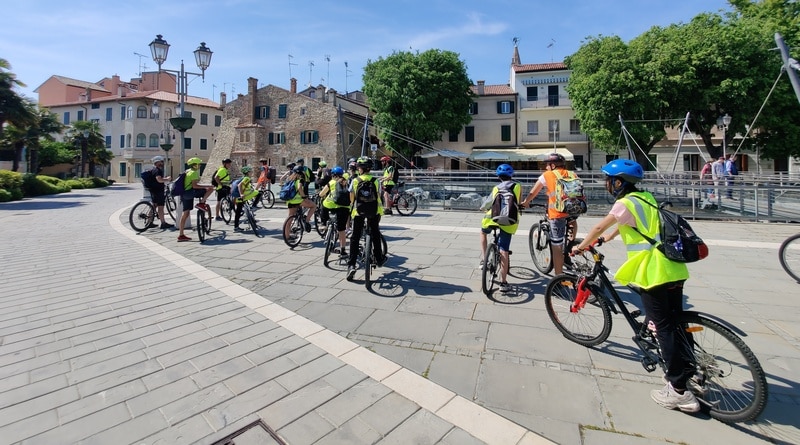 Grazie all’intermodalità bici/treno, principale novità di quest’anno, i ragazzi delle scuole medie hanno raggiunto Cervignano per percorrere la parte finale della Ciclovia Alpe Adria con la visita di Aquileia e il bagno ristoratore nel mare di Grado.