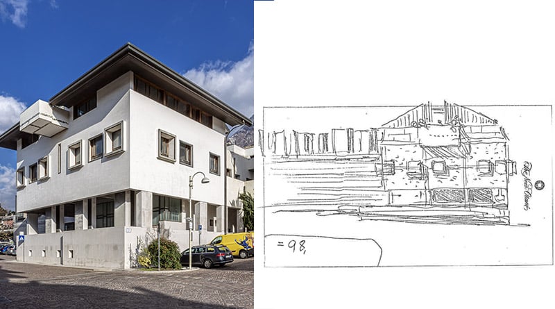 Nel 1978 poche ore prima di subire l’incidente che ne causò la morte, Carlo Scarpa nell’hotel giapponese in cui era ospite disegnò su un blocco di appunti le linee che avrebbero caratterizzato uno dei palazzi simbolo della ricostruzione del Friuli, nella capitale del sisma del ’76, ovvero Gemona. Quel palazzo, che doveva ospitare la nuova sede della Banca Popolare di Gemona, fu poi portato a termine dall’architetto Luciano Gemin, venendo quindi chiuso vent’anni fa sull’onda della riorganizzazione del sistema bancario.