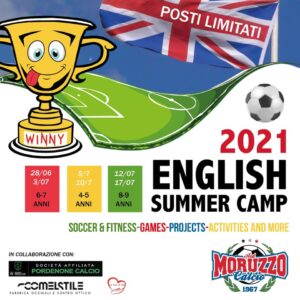 L’Asd Moruzzo calcio, che vanta 50 anni di storia, ha deciso di continuare la sua attività anche durante il periodo estivo con un Camp, indirizzato ai bambini di età compresa tra i 4 e i 9 anni, età sensibile per l’apprendimento di una seconda lingua e per acquisire una maggiore consapevolezza corporea grazie alla sperimentazione di diverse attività.