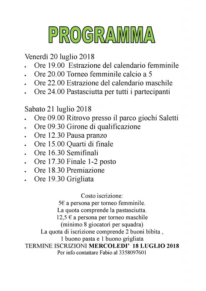 Iscrizioni entro mercoledì 18 luglio chiamando il 3358097601.