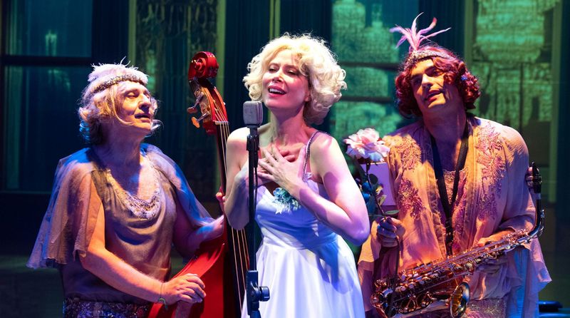 La versione di Moretti di fine anni Ottanta mantiene lo spirito del film di Wilder, mentre questa nuova messinscena di Gleijeses sfrutta la tecnologia per rinnovare l’allestimento, ricreando decine di ambientazioni diverse, tra spiagge, hotel e yacht.