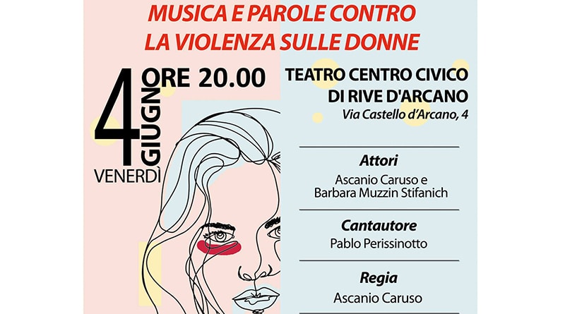 Il Comune di Rive d’Arcano e Proscenium Teatro propongono venerdì 4 giugno alle ore 20 al Teatro Centro Civico di Rive D’Arcano “Musica e parole contro la violenza sulle donne”, uno spettacolo elegante e toccante, di riflessione ma anche ironico che prevede letture sceniche ed interpretazioni sulla tematica della violenza contro la donna.
