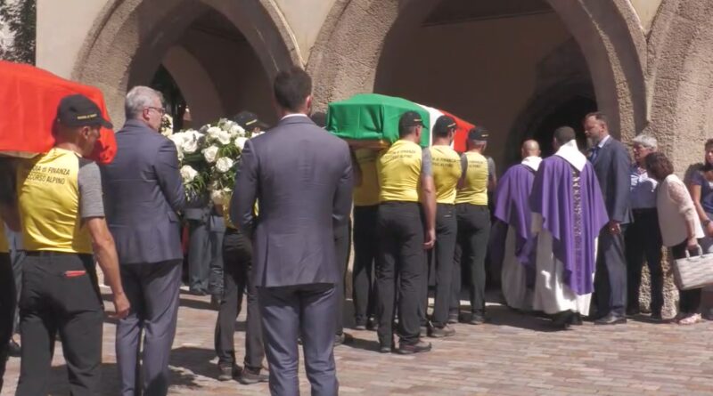 A portare i feretri in spalla sono stati i colleghi del Soccorso Alpino della Guardia di Finanza che li “scorteranno” per l’intera funzione, disposti in picchetto davanti all’altare.