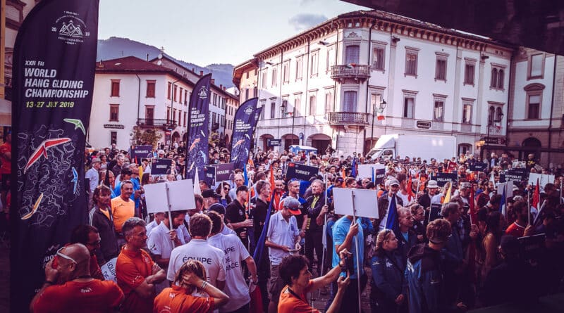 Ci sono occasioni speciali, momenti in cui l’Inno Nazionale riesce ad unire migliaia di persone provenienti da ogni angolo del pianeta, perché è vero, le note del “Canto degli Italiani” fanno breccia anche nel cuore di chi italiano non è. Alla presenza di Lucio Gomiero (direttore generale di PromoTurismo) e Giampaolo Bidoli (consigliere) in rappresentanza della Regione Friuli Venezia Giulia, del sindaco di Tolmezzo Francesco Brollo, nonché degli Enti coinvolti, dei membri della Federazione Internazionale Aeronautica (FAI) e di tante altre autorità, si è da poco conclusa nella centralissima Piazza XX Settembre a Tolmezzo la cerimonia di apertura dei XXII Campionati del Mondo di Deltaplano, anticipata dall’inconfondibile suono dei tamburi e dagli sbandieratori “Lupi Feritas” di Valvasone, che hanno di fatto aperto la festa. Successivamente, Via Cavour, via del Duomo e via Renato Del Din si sono colorate con i motivi della bandiera italiana, creando un fantastico effetto visivo: i drappi del Tricolore sono stati portati da bambini con al seguito gli atleti provenienti dalle 29 nazioni presenti equamente divisi e, una volta giunti in Piazza, gli stessi hanno formato il Tricolore che poi è stato esposto sul palazzo che domina il centro di Tolmezzo.