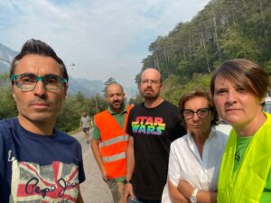 Resia come un girone dell’Inferno di Dante. Oggi sabato 23 luglio, per verificare la gravità della situazione, sul posto c’erano la parlamentare italiana Aurelia Bubisutti e il Vicepresidente del Consiglio Regionale Stefano Mazzolini. Al terzo giorno dall’inizio del rogo di Povici che sta inghiottendo e minacciando ancora la zona del resiano, i due politici friulani hanno voluto