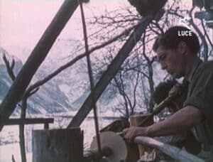 Considerato perduto per decenni e recuperato nell’archivio dell’Istituto Luce grazie alle ricerche di Paolo Giordani, Claut, del 1955, illustra la tradizionale attività dei clautani Âdurante i mesi di relativo isolamento invernale: la lavorazione artigianale, a domicilio, del legno per la realizzazione di utensili casalinghi che le donne, appena il clima lo permetteva, andavano a vendere in pianura. Girato alcuni anni dopo sempre nel pieno della stagione invernale ma di taglio turistico, Tarvisio (nella foto di copertina un’immagine), del 1963, va alla scoperta dei paesaggi e degli ambienti del Tarvisiano, mentre nel più noto Dongje il fogolâr, dello stesso anno, si rivedono monumenti, edifici e angoli caratteristici della Gemona pre-terremoto. Le bande di Orzano, del 1964, indaga il curioso fenomeno della musica bandistica praticata diffusamente nel piccolo centro del cividalese di soli 650 abitanti, essenzialmente contadini, che negli anni dell’immediato dopoguerra la elessero a svago e continuarono a esercitarla con impegno, animati anche dallo spirito di rivalità tra due diverse formazioni. Sullo sfondo il paese, le sue tradizioni, gli incontri amorosi, i lavori agricoli. Infine, in Architettura rustica in Carnia, del 1969, Giorgio Trentin mostra come l’architettura tradizionale sia un forte elemento di qualificazione del paesaggio carnico ma già all’epoca minacciata da degrado e abbandono.