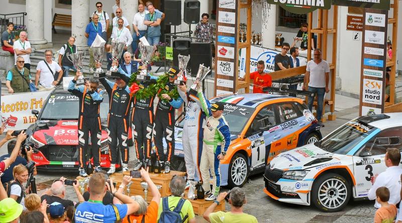 Finale più maestoso non ci poteva essere, grazie a una genialata di Carnia Pistons. Il tenore Salvatore Angileri in piazza ad Ampezzo a cantare l’inno italiano e la celeberrima aria “Nessun dorma” dalla Turandot di Giacomo Puccini. Si è concluso davvero a voce altissima il 9° Rally Valli della Carnia con la vittoria netta e meritata di Filippo Bravi ed Enrico Bertoldi in 50’49’’6. L’equipaggio della scuderia Mrc Sport ha battuto i loro mentori, Claudio De Cecco e Giovanni Battista Campeis, entrambi su Hyundai i20 N rally2 Evo preparate dalla Friulmotor dello stesso De Cecco. Un duello molto ravvicinato ieri con le prime quattro prove speciali sprint (bis di “Voltois” e “Avaglio”) che avevano marcato un distacco di soli 5’’6. Oggi invece, sulle prove lunghe di “Val di Lauco” e “Passo Duron”, i battistrada non hanno lasciato scampo agli avversari, allungando progressivamente con il miglior tempo in ogni sezione, tranne la prima ripetizione di Lauco con la sortita della Skoda Fabia di Michele Griso e Alessandro Lucato (10’31’’4) buona per fare guadagnare alla coppia targata Munaretto la terza posizione provvisoria. Invece nel finale un sussulto d’orgoglio di Dimitri Tomasso e Matteo Turatti con un’altra Skoda Rally2 ha permesso loro di agguantare il terzo posto conclusivo dopo una gara tribolata, al di sotto delle aspettative. Giù dal podio, dunque, Griso-Lucato, davanti a Gianpaolo Boria ed Erica Furlan, Alberto Martinelli e Giulio Calligaro, Andrea Schneider ed Eneo Giatti, tutti su Skoda Fabia Rally2 Evo. Nella top ten l’ottavo posto di Giampaolo Bizzotto e Sandra Tommasini (Peugeot 208), primi di Classe Rally4, il nono di Marco Marchiol e Veronica Modolo, il decimo di Alberto Ferragotto e Francesco Maggiolino, rispettivamente primo e secondo di Classe Super 1600 su Renault Clio.