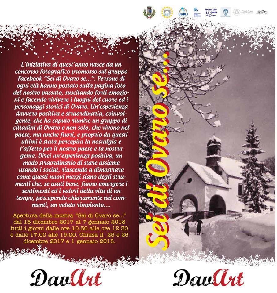 Prendono il via sabato 16 dicembre ad Ovaro gli eventi natalizi di “DavArt“, con la novità della mostra fotografica nata nell’ambito del gruppo Facebook “Sei di Ovaro se…”.