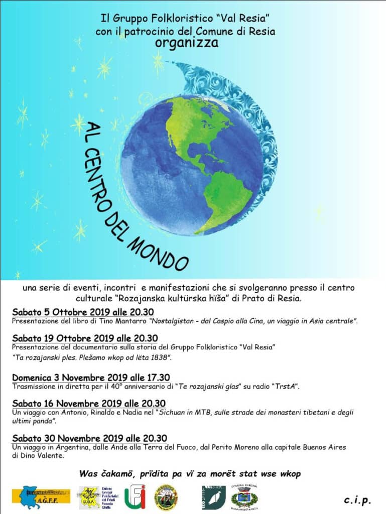 Riparte il 5 ottobre alle ore 20.30 la serie di eventi, incontri e manifestazioni organizzati dal Gruppo Folkloristico Val Resia intitolata “Al centro del mondo”.