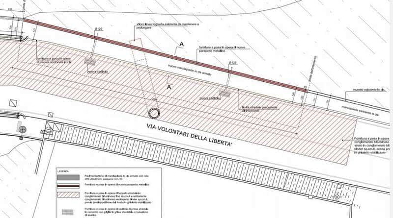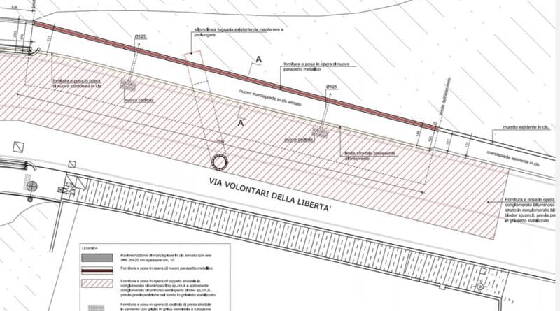 Lo stesso Comune ha voluto proporre alcune immagini del progetto relativo all’intervento (vedi sotto), “per evidenziare come non si tratti di un semplice marciapiede ma molto di più”.