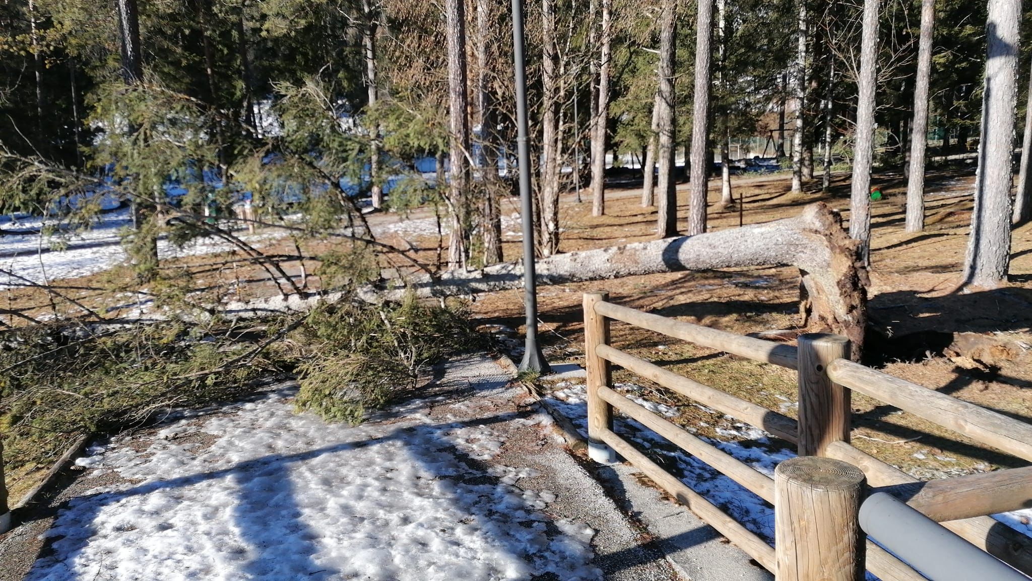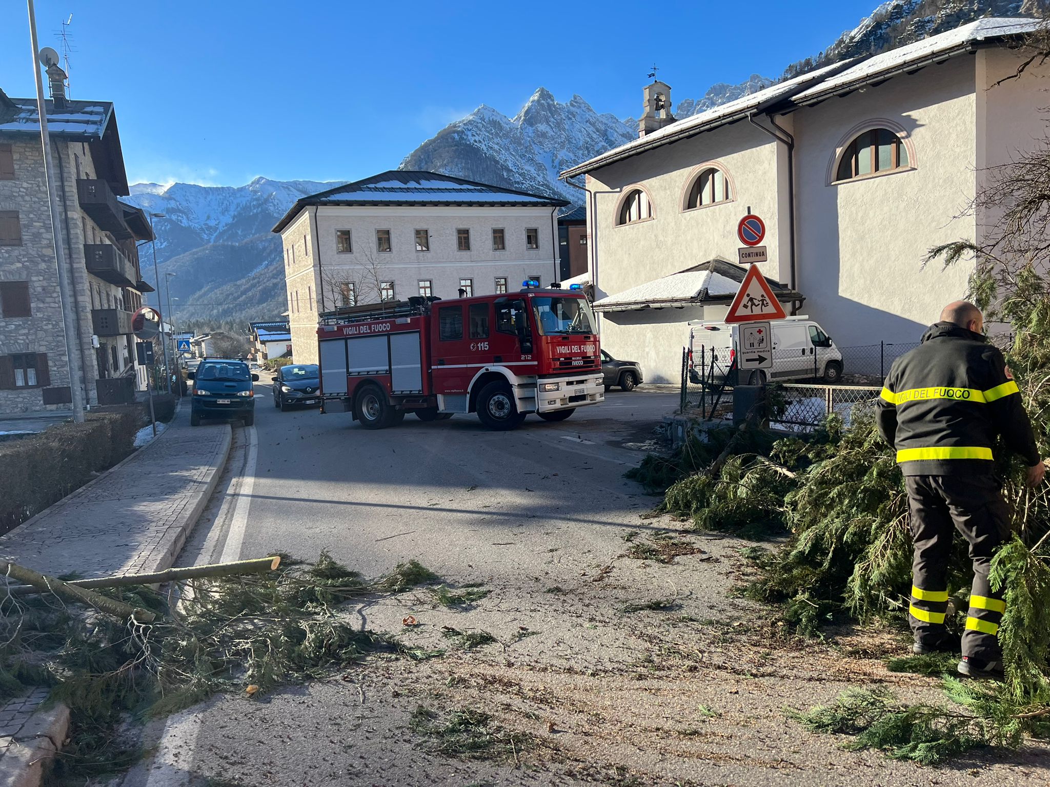 Successivamente, lungo la strada statale, nei pressi delle scuole, si è sradicata una pianta cadendo su una vettura in transito con a bordo una famiglia che fortunatamente non ha riportato lesioni (è stata controllata sul posto dell’equipaggio sanitario di una ambulanza proveniente da Ampezzo).