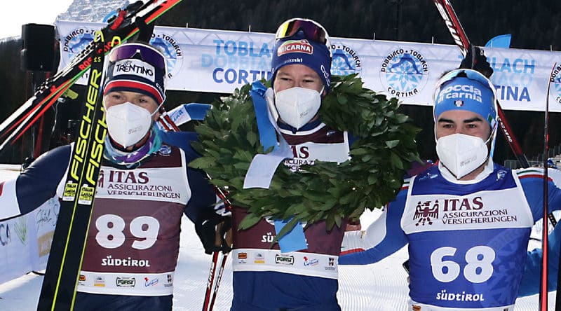 Nel finale però Beda Klee, con un’azione da manuale, si è liberato di Carabinieri ed Esercito, alias Gardener e Montello, mentre Fanton ha dovuto ‘duellare’ con la motoslitta delle riprese TV ed ha infilato la dirittura d’arrivo alle loro spalle. Klee con la coda dell’occhio ha controllato la volata di Gardener e Montello. Pericoloso l’affondo di Gardener finito a pochi decimi dall’elvetico, un secondo invece per Montello e 4” per Fanton. Primo dei “civili” Matteo Tanel, settimo, che nel gruppo che seguiva i protagonisti del podio ha vinto la volata col biathleta Bauer, costretto ad accontentarsi dell’8° posto davanti a Klettenhammer, secondo degli altoatesini.