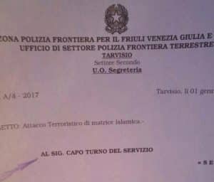 “La gravità delle conseguenze derivanti dalla fuga di notizie dall’interno della Polizia di Stato è inaudita; al netto di questa valutazione che sarà oggetto di sindacato interno al Corpo, ritengo – dice Zilli – inaccettabile che in un momento di altissima tensione come questo, all’indomani dell’ennesima strage (Istanbul), si giunga a smentire una notizia che parrebbe assolutamente vera, contenuta in una circolare indirizzata all’Ufficio di frontiera di Tarvisio, semplicemente per evitare allarmismo sociale”.