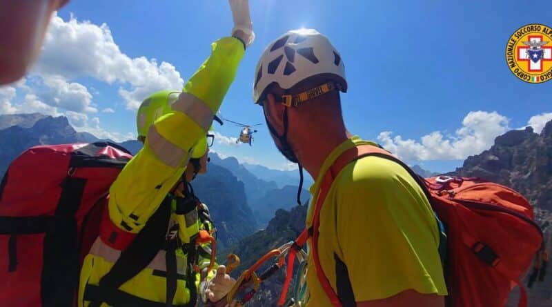 Diversamente da quanto era stato comunicato questo pomeriggio dal Soccorso Alpino, l’alpinista caduto sul Campanile di Val Montanaia non è caduto da trenta metri – come sembrava in un primo tempo – bensì da tre metri. L’uomo, un toscano del 1981, stava risalendo l’ultima lunghezza della via normale quanto appunto è “volato” cadendo di schiena su una cengia (camminamento orizzontale sulle rocce), impattando violentemente su un sasso che stava sulla cengia, accanto al compagno di cordata che era in sosta a fargli sicurezza. Il tecnico dell’elisoccorso di Pieve di Cadore è stato calato direttamente sulla cengia con una verricellata da venticinque metri, seguito dal medico. I soccorritori hanno visitato e stabilizzato il paziente e lo hanno imbarellato per recuperarlo a bordo dell’elicottero che nel frattempo era atterrato al Bivacco Perugino, assieme al compagno. Come detto quest’ultimo è stato lasciato lasciato al Rifugio Pordenone mentre l’infortunato è stato portato all’ospedale di Belluno.