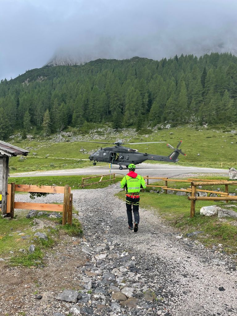 Questa mattina è arrivato alle 8 anche l’elicottero della Protezione Civile che ha effettuato delle ricognizioni nel momento di scarsa visibilità. La scelta di impiegare poi per il recupero l’elicottero dell’Esercito Italiano è legata al fatto che tale apparecchio è dotato di verricello, a differenza del B-3 della Protezione Civile. Tra Soccorso Alpio ed Esercito italiano esistenza collaborazione storica fin dai primi anni di esistenza del Soccorso Alpino stesso. Esiste inoltre un rinnovato accordo di attività congiunta suggellato formalmente nel marzo 2021. L’elicottero UH90 è inoltre l’unico velivolo abilitato al volo notturno ed è per questo motivo che è stato attivato fin dalle 4 del mattino nel tentativo di effettuare quanto prima il recupero in parete.