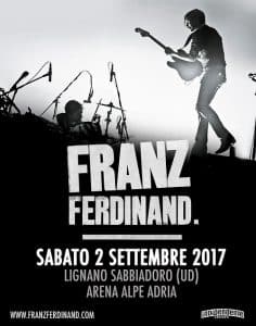L’estate musicale in Friuli Venezia Giulia conferma Lignano Sabbiadoro capitale dei grandi eventi live in questo 2017. Annunciato oggi un nuovo grande appuntamento con una delle band rock internazionali di maggior successo degli ultimi anni, i Franz Ferdinand. Vincitori di 2 Brit Awards, nominati 5 volte ai Grammy, con più di 7 milioni di dischi venduti in tutto il mondo, la band guidata da Alex Kapranos torna a grande richiesta in Italia a tre anni di distanza dall’ultima esibizione, per sole due date estive, l’unica delle quali nel Nord Italia sarà sabato 2 settembre all’Arena Alpe Adria di Lignano Sabbiadoro, organizzata dalla Città di Lignano Sabbiadoro e Zenit srl, in collaborazione con la Regione Friuli Venezia Giulia, l’Agenzia PromoTurismoFVG e Indipendente Concerti. Biglietti disponibili online su Ticketone dalle 11.00 di giovedì 9 marzo e nei punti vendita autorizzati dalle 11.00 di venerdì 10 marzo (dalle 11.00 di mercoledì 8 marzo sarà attiva anche la presale su www.iovado.club e MyLiveNation). Info e punti vendita su www.azalea.it .