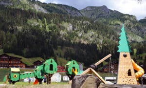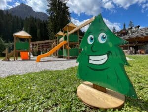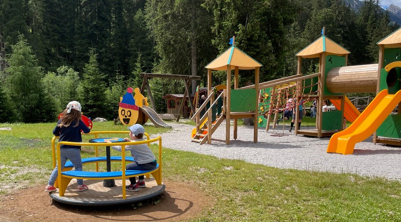 Una pineta di scivoli, torri, tuboni, carrucole, minipalestre di arrampicata e altalene, per vivere in famiglia momenti divertenti con i bambini, immersi nella natura di Sappada/Plodn”.