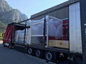 Sono tre i tir arrivati direttamente dalla Germania che hanno trasportato la taglia-bobinatrice, macchinario che avrà il compito di effettuare le lavorazioni finali sul film plastico che AMB produce per aziende del settore prevalentemente alimentare e medicale. Smontato in cinque tronconi e una moltitudine di altre parti più maneggevoli, l’impianto sarà montato da un team specializzato di sei persone – in parte addetti AMB, in parte partner dell’azienda fornitrice tedesca – che ci lavorerà per le prossime tre settimane.