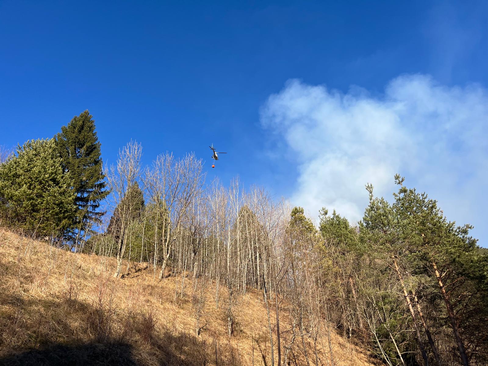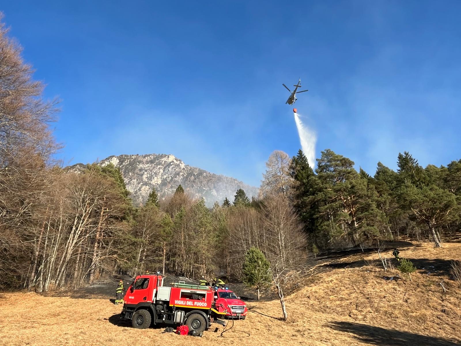 Vista la zona boschiva, si è reso necessario l’intervento dell’elicottero della Protezione Civile.
