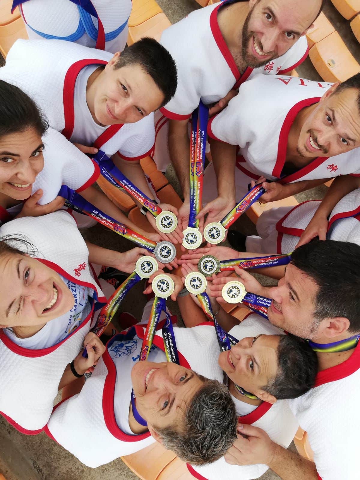 Dieci gli atleti friulani convocati nella rappresentativa nazionale capitanata dal maestro Alessio Pasciulli e ben 9 le medaglie collezionate dal team Shuai Jiao Fvg, tra le quali si contano sette ori, conquistati combattendo nelle rispettive categorie da Marco Pedrazzoli e Domenico Coloni (Wushu Shaolin Tolmezzo), Marco Ferretti (Grappling Pordenone), Valentina Lenzini, Marika Sato, Mariasole Momentè e Lara Battistella (Kuroki Zoppola). Inoltre si segnalano l’argento di Valentina Zucchet (Zoppola) e il bronzo di Enrico Cimenti (Tolmezzo).