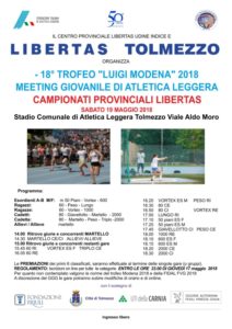Si svolgerà sabato 19 maggio a partire dalle 14.30 la diciottesima edizione del Trofeo”Luigi Modena”, il meeting giovanile di atletica leggera riservato agli atleti regionali e del vicino Veneto.