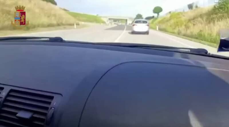 Un giovane alla guida di una Fiat Stilo SW dopo una azzardata manovra di sorpasso in curva, noncurante della linea continua, supera un furgone, invadendo completamente la corsia opposta. Sconsiderata anche la velocità, circa il doppio di quella consentita in quel tratto. I poliziotti, a bordo dell’auto civetta, si lanciano in un folle inseguimento con sirena e lampeggianti accesi.