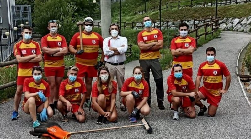 Una piccola delegazione della Seniores femminile e maschile del Rugby Gemona si è cimentata nella pulizia dell’area verde del percorso vita, vicino alla sede universitaria di Gemona.