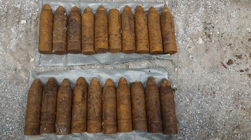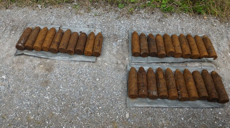 L’attività di bonifica è iniziata il 20 settembre scorso e si è conclusa da poco. Si tratta 112 granate da 75 millimetri modello Shrapnel di nazionalità italiana, risalenti alla prima guerra mondiale. I residuati sono stati trovati a quota 1800 metri circa; si presentavano affioranti dal terreno, vicino a delle trincee del primo conflitto. Visto l’elevato numero di ordigni, sono stati impiegati giornalmente e per una settimana più di una decina di militari del 3^ Reggimento Genio Guastatori.