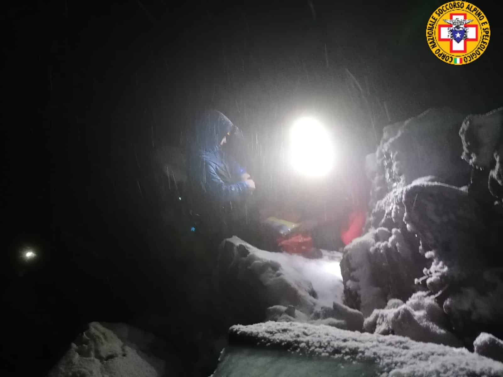 La giovane si trova pochi metri sotto la cima ad una quota di circa 2600 metri bloccata su una cengia esposta sotto una nevicata ed è in ipotermia a causa del freddo.