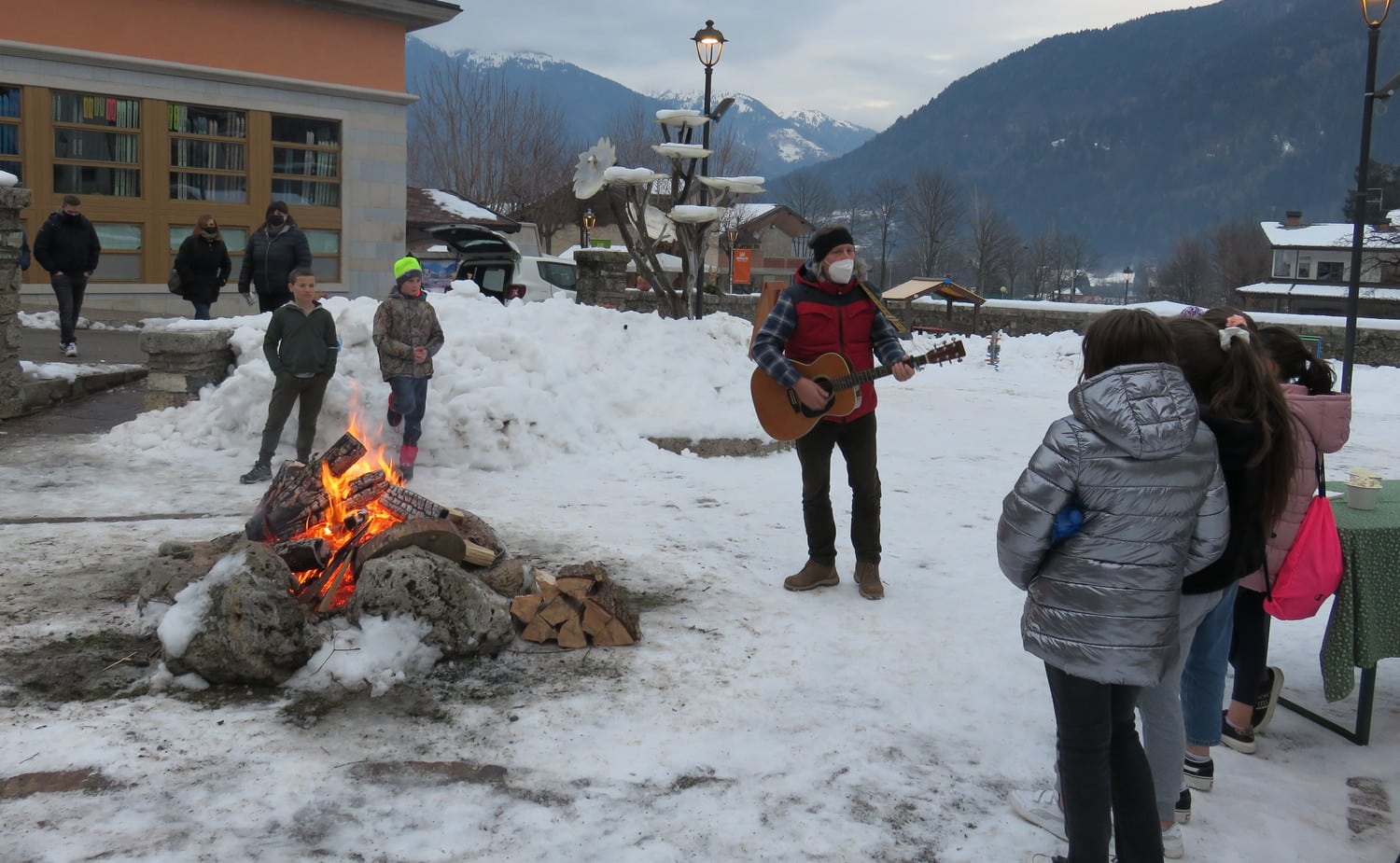 Nel pomeriggio di ieri, attorno al fuoco acceso, i bambini della scuola primaria di Sutrio, accompagnati dal loro maestro Lino Straulino, hanno intonato il Puer Natus e alcuni canti natalizi in occasione dell’inaugurazione di “Borghi e Presepi”, idea nata grazie al Presepe di Gaudenzio Straulino detto Teno.