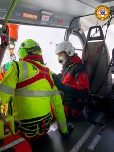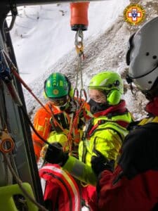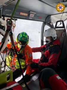 Con una seconda verricellata è scesa l’infermiera con il sacco verricellabile, nel quale la sfortunata atleta è stata adagiata per essere successivamente recuperata a bordo assieme al medico.