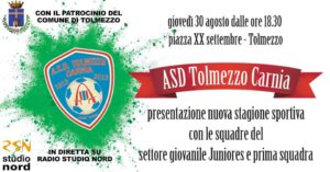 La formalizzazione del passaggio delle cariche avverrà nelle prossime settimane. L’Asd Tolmezzo Carnia nel frattempo invita tutti alla Presentazione Ufficiale della Prima squadra che disputerà il prossimo Campionato di Promozione Girone B Fvg e delle squadre giovanili che militeranno nei Campionati regionali di categoria Juniores “Under 19”, Allievi “Under 17”, Giovanissimi “Under 15” e di tutte le altre formazioni giovanili. L’appuntamento è fissato per giovedì 30 agosto 2018, a partire dalle ore 18.30 in piazza XX Settembre a Tolmezzo. La dirigenza dell’Asd Tolmezzo Carnia, forte delle prestazioni e dei risultati ottenuti a vari livelli nella scorsa stagione sportiva, nel riproporre questa iniziativa che è aperta a tutti i sostenitori, agli organi di Stampa, alle società dei Campionati regionali, del Campionato Carnico oltre che all’intera popolazione, intende rilanciare un momento di festa e condivisione collettiva dei suoi nuovi obiettivi, programmati anche grazie all’innesto di nuove figure all’interno del proprio staff.