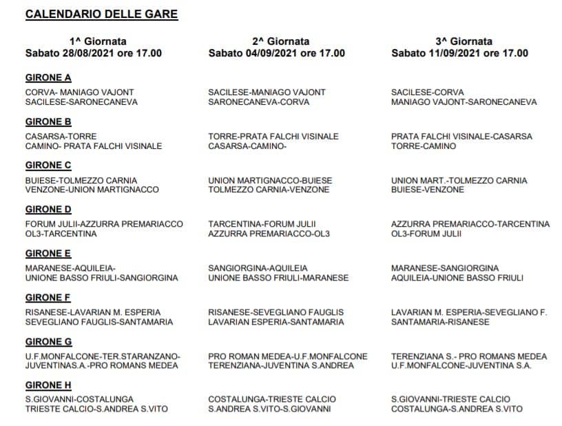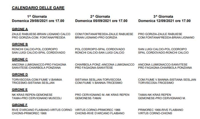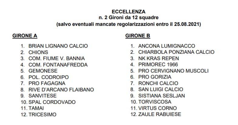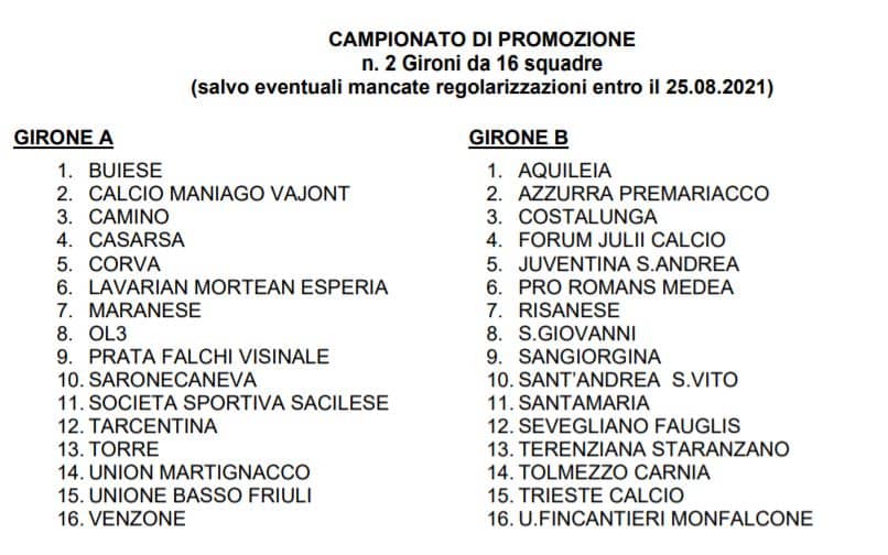 Questi i gironi di Promozione, con il Tolmezzo che ritorna nel girone B “triestino” mentre Bujese, Venzone e Tarcentina nell’A