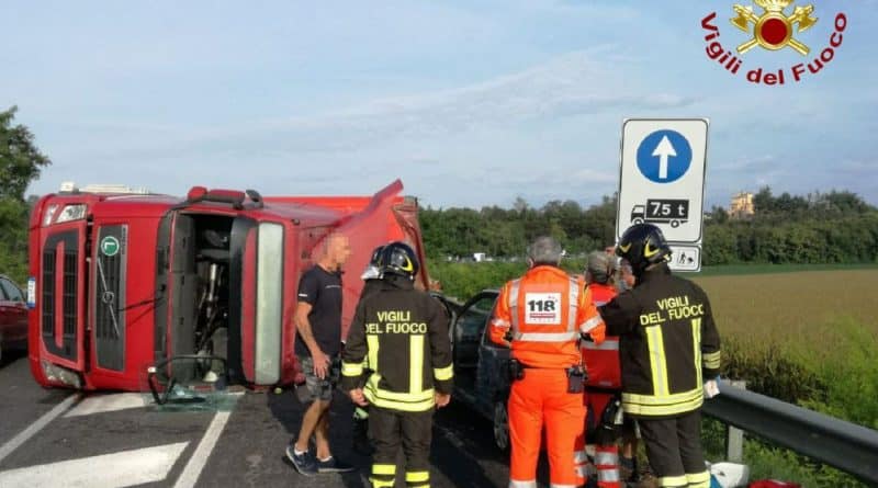 Camion si ribalta, tronchi sulla strada, chiuso da stamattina il ponte di Dignano