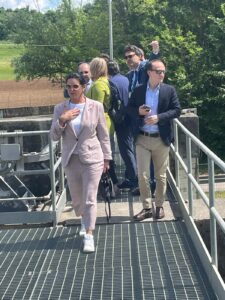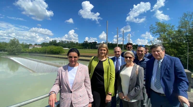 Dopo il convegno di apertura a Villa Manin e la posa della prima pietra per i lavori di bonifica ambientale a Torviscosa, la Settimana della bonifica – appuntamento annuale promosso dall’ANBI nazionale (associazione nazionale bonifiche) con lo scopo di divulgare l’attività, il ruolo e le funzioni dei consorzi di bonifica, dalla difesa idraulica del territorio al servizio irriguo fornito all’imprenditoria agricola – organizzata dal Consorzio di bonifica pianura friulana, è proseguita a Rive d‘Arcano e San Daniele, con la visita al canale scolmatore Corno – Tagliamento. Presso questa importante opera idraulica, entrata in funzione per la prima volta 20 anni fa, è stato effettuato un sopralluogo dal viceministro del Ministero dell’Ambiente e della Sicurezza Energetica, on. Vannia Gava, dal segretario generale dell’Autorità di Bacino Distrettuale delle Alpi Orientali, Marina Colaizzi, e dal direttore centrale Ambiente della Regione FVG, ing. Massimo Canali, accompagnati dalla presidente del Consorzio di Bonifica Pianura Friulana Rosanna Clocchiatti e dal direttore Armando Di Nardo, oltre che dal sindaco di San Daniele Pietro Valent e dall’assessore al Comune di Rive d’Arcano Nicola Nicli.