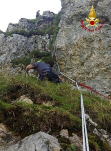 Individuato il punto migliore per raggiungere gli animali, i tecnici SAF hanno realizzato gli ancoraggi, necessari a garantire la sicurezza delle operazioni, poi si sono calati per circa 60 metri fino a raggiungere le capre; con molta attenzione hanno assicurato tutti i capi di bestiame alla parete rocciosa e successivamente tramite un paranco hanno iniziato il recupero in salita di ogni singolo animale. Terminate le operazioni di recupero e portati gli animali in luogo sicuro le capre sono state affidate ai proprietari della malga Lodin alta. L’intervento si è concluso con il rientro delle squadre SAF attorno alle 20.