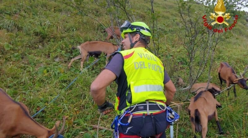 Capre in difficoltà sul Monte Lodin a Paularo recuperate grazie ai Vigili del Fuoco