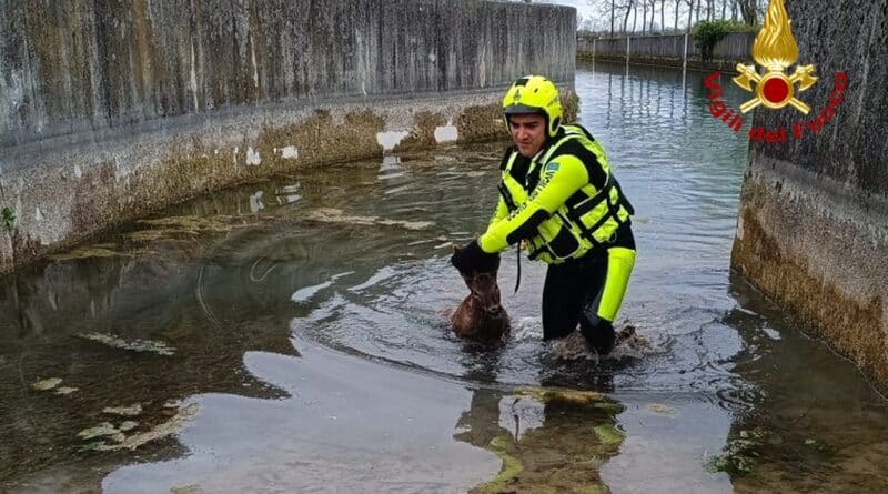Individuato l’animale, i soccorritori fluviali sono entrati in acqua e raggiunto l’animale lo hanno “accompagnato” fuori dal canale fino ad un prato dove, una volta appurato che l’animale non era ferito, lo hanno liberato.