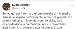 A darne notizia il figlio Suan Selenati, campione di deltaplano, con un post su Facebook.