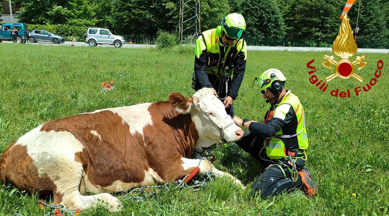 Nuovo salvataggio di una mucca scivolata in un dirupo a Paularo