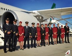 Ad accompagnare il Santo Padre, un equipaggio formato da quattro piloti e nove assistenti di volo. Il supervisore delle attività di bordo sarà il comandante Alberto Colautti, capo di tutti i piloti Alitalia, 55 anni, friulano, 14.000 ore di volo, ex elicotterista della Marina Militare. Il comandante titolare del volo è Alfonso Piro – 57 anni, romano, laureato in psicologia, 16.000 ore di volo, sposato, una figlia – e con lui i due primi ufficiali Nereo Brambilla – 57 anni, nato a Mestre e residente a Treviso, sposato, due figlie, già pilota dell’Aeronautica militare, 16.000 ore di volo – e Alessandro Giusti (48 anni, romano, laureato in ingegneria aeronautica e aerospaziale, 11.500 ore di volo).