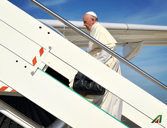 Il viaggio papale sarà effettuato con un Airbus A330 intitolato all’artista veneziano Giovanni Battista Tiepolo. Tra gli assistenti di volo a bordo ci sarà un suo discendente, Marco Tiepolo, 47 anni, friulano di Tolmezzo. Con Papa Francesco, oltre alla delegazione pontificia, viaggeranno i rappresentanti della stampa italiana e internazionale. Presente a bordo anche il team Alitalia dedicato ai voli speciali. Dal 1964, in occasione del viaggio in Terra Santa di Paolo VI, Alitalia è la compagnia di riferimento della Santa Sede per i Viaggi Apostolici all’estero. Quello in Colombia sarà il 166° volo papale Alitalia.